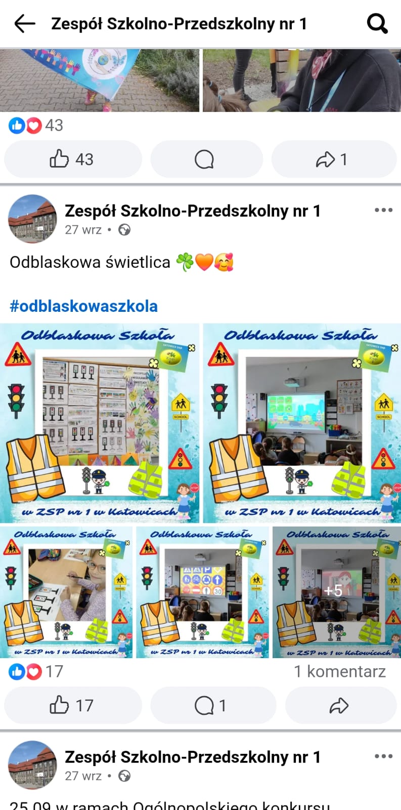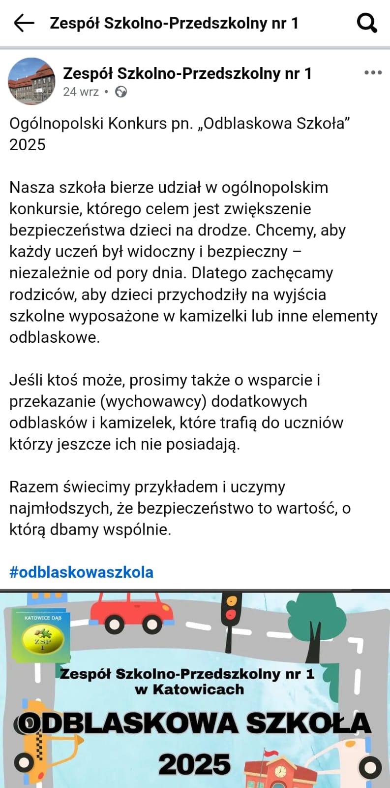 W ramach działań promujących konkurs „Odblaskowa Szkoła 2025” aktywnie wykorzystaliśmy środki komunikacji szkolnej — na stronie internetowej szkoły oraz na profilu Facebook szkoły ukazało się ponad 20 publikacji dotyczących naszych inicjatyw związanych z bezpieczeństwem ruchu drogowego i użyciem elementów odblaskowych. Publikacje cieszyły się dużym zainteresowaniem ze strony uczniów, rodziców oraz lokalnej społeczności, co przyczyniło się do zwiększenia świadomości i zaangażowania w akcję. Dzięki konsekwentnej obecności tych treści w mediach szkolnych uzyskaliśmy silniejszy efekt promocyjny oraz wsparcie wychowawcze dla podejmowanych przez nas działań.