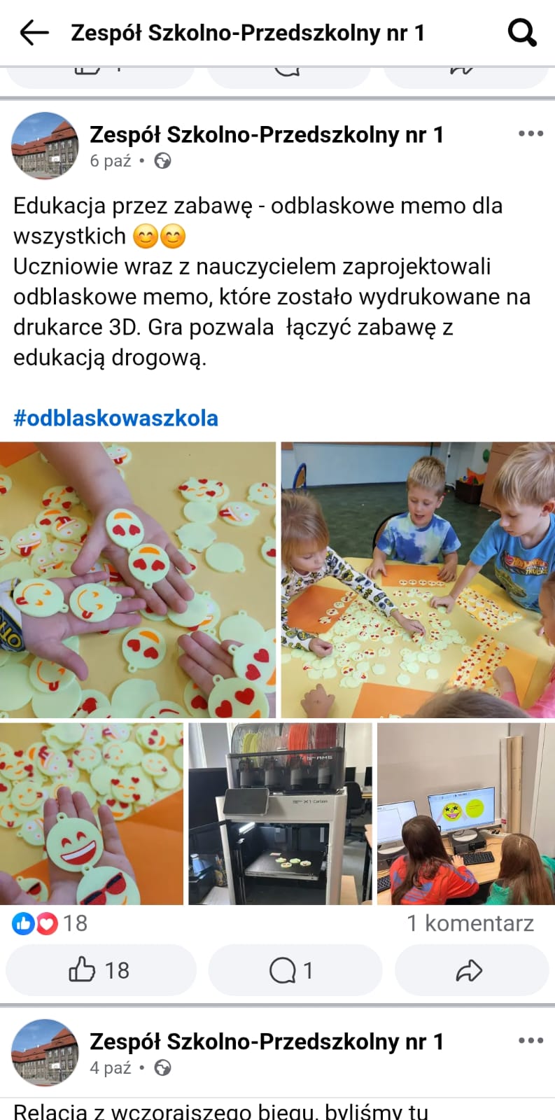 Uczniowie wraz z nauczycielem zaprojektowali odblaskowe memo, które zostało wydrukowane i przygotowane nie tylko dla uczniów klas młodszych, ale także dla przedszkolaków. Gra pozwalała dzieciom łączyć zabawę z edukacją drogową, utrwalając wiedzę o znaczeniu elementów odblaskowych w codziennym życiu. Celem akcji było stworzenie innowacyjnej i angażującej formy nauki, rozwijającej kreatywność oraz umiejętność współpracy w interaktywnych ćwiczeniach.